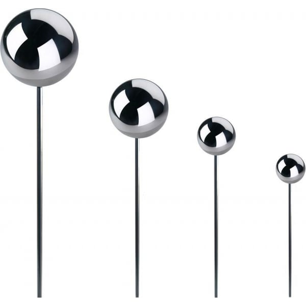 Ukrasna kugla na šiljku. Proizvod je izrađen od visokokvalitetnog, certificiranog nehrđajućeg čelika, čija je površina iznimno glatka i zrcali okolinu zahvaljujući dugotrajnom i kompliciranom procesu poliranja do tzv. visokog sjaja. Korišteni čelik debljine 0,5 mm je vrlo tvrd i ne savija se. Zahvaljujući visokoj otpornosti na mehaničke i atmosferske čimbenike, lopta je savršena za otvorene i javne prostore - ispred zgrada, ureda, hotela, restorana. Dizajnerska kugla jednostavnog je oblika, ali nevjerojatno ukusna i privlačna dekoracija. Više informacija možete pronaći u kartici tehnički podaci. Proizvodi su ručni rad te stvarne dimenzije mogu neznatno odstupati od deklariranih (+/- 10%).