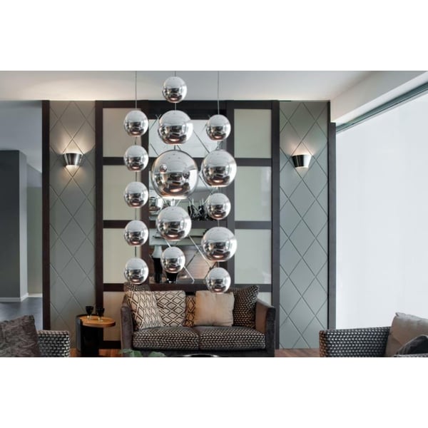 Ukrasna girlanda. Set ekskluzivnih zrcalnih ukrasnih kuglica na liniji od nehrđajućeg čelika. Proizvod je izrađen od visokokvalitetnog, certificiranog nehrđajućeg čelika čija površina, zahvaljujući dugotrajnom i kompliciranom procesu poliranja, ima visoki sjaj te je iznimno glatka i reflektirajuća na okolinu. Korišteni nehrđajući čelik debljine 0,5 mm vrlo je tvrd i ne savija se. Set sadrži 5 loptica dva različita promjera koje se izmjenjuju. Girlanda je originalni ukrasni element s različitim primjenama - može se koristiti i u okomitom i u horizontalnom rasporedu - obje strane kuglica imaju blokator koji sprječava pomicanje. Zahvaljujući visokoj mehaničkoj i atmosferskoj otpornosti, set savršeno funkcionira na otvorenim i javnim prostorima - ispred zgrada, ureda, hotela, restorana. Ovaj dizajnerski vijenac nevjerojatno je ukusan i privlačan ukras. Promjer veće lopte: 10cm; Promjer manje kuglice: 6cm; Visina (duljina strune): 100cm. Više informacija možete pronaći u kartici tehnički podaci. Proizvodi su ručni rad i stvarne dimenzije mogu malo odstupati od deklariranih (+/- 10%).