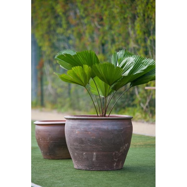Velika posuda lonac s okruglim dnom. Izrađena od tamno smeđe terakote. Zahvaljujući odabiru odgovarajuće vrste gline, vrlo visokoj temperaturi u peći (iznad 1100 stupnjeva Celzijusa), te pravilnom postupku pečenja, posuda je otporna na mraz. Korištenje u vrtovima tijekom cijele godine neće biti problem. Zahvaljujući svojoj čvrstoći savršeno će funkcionirati iu javnim prostorima. Artikal je vrlo čvrsto izrađen i funkcionalnog oblika - ima dovoljno mjesta za korijenski sustav čak i vrlo velikih biljaka. Uz odgovarajući raspored, posuda će svakako dati južnjački karakter okolini u kojoj će biti postavljena. Proizvodi su ručni rad i stvarne dimenzije mogu malo odstupati od deklariranih (+/- 10%). Na dnu je pripremljena rupa za otjecanje viška vode, koja se po potrebi može začepiti hidroizolacijom. Ovaj model također ima mogućnost kupnje originalnog stalka (broj proizvoda 75.027). Informacije o tome koji promjer stalka odgovara odabranoj veličini posude možete pronaći u kartici tehnički podaci.