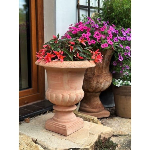 Veliki lonac u obliku amfore. Proizvod je izrađen od neglazirane keramike - od organskog materijala koji reagira s vodom, podlogom i kemikalijama, što znači da se ovisno o upotrebi mogu privremeno pojaviti samogenerirane naslage na površini. To je potpuno prirodan proces, koji zajedno s biljkom stvara jedinstvenu atmosferu. Lončanica će svakako dati mediteranski karakter ambijentu u kojem će biti izložena. Promjer: 40cm Visina: 50cm Više informacija možete pronaći u kartici tehnički podaci. Proizvodi su ručni rad i stvarne dimenzije mogu malo odstupati od deklariranih (+/- 10%). Ovaj model je sezonska vrtna posuda - što znači da nema jamstva otpornosti na smrzavanje i savjetuje se da ga zaštitite za zimu - sklonite ga od izravnog izlaganja vremenskim uvjetima (npr. pokrijte ga, stavite pod zaklon itd.). Za produljenje vijeka trajanja posude preporuča se prije sadnje dodatno zaštititi unutarnje stijenke tekućim sredstvom u obliku folije.