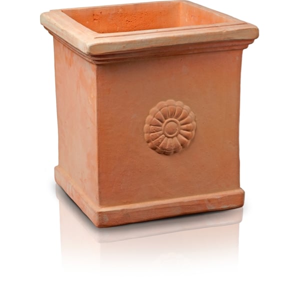 Velika žardinjera četvrtastog oblika. Proizvod je izrađen od neglazirane keramike - od organskog materijala koji reagira s vodom, zemljom i kemikalijama, uzrokujući pojavu prirodnih naslaga na površini tijekom vremena, ovisno o upotrebi. To je potpuno prirodan proces koji u kombinaciji s biljkom stvara jedinstvenu atmosferu. Posuda će zasigurno dati mediteranski karakter svojoj okolini u kojoj će biti izložena. Na zidu je podignuti ukras - rozeta. Pripremljena je rupa za odvod viška vode, koja se može blokirati vodonepropusnom tvari ako je potrebno. Više informacija možete pronaći u odjeljku tehničke specifikacije. Proizvodi su ručni rad i stvarne dimenzije mogu malo odstupati od deklariranih (+/- 10%). Ovaj model je sezonska vrtna žardinjera - što znači da nije otporan na mraz i preporuča se zaštititi ga tijekom zime - uklanjanjem od izravnog izlaganja vremenskim uvjetima (npr. skladištenje ispod krova, pokrivanje itd.). Kako bi se produžio vijek trajanja žardinjere, također se preporučuje korištenje zaštitnog premaza u obliku tekućeg filma na unutarnjim stijenkama prije sadnje.