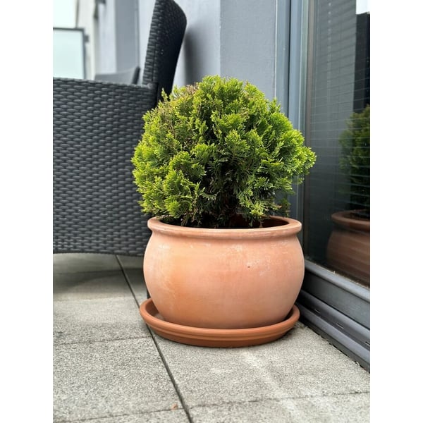 Niska okrugla posuda. Proizvod je izrađen od neglazirane keramike - od organskog materijala koji reagira s vodom, podlogom i kemikalijama, što može uzrokovati pojavu prirodnih naslaga na površini ovisno o uporabi. To je potpuno prirodan proces koji uz biljku stvara jedinstvenu atmosferu. Ova posuda zasigurno će dodati mediteranski karakter okruženju u kojem je izložena. Na dnu ima drenažni otvor koji se po potrebi može začepiti vodootpornom tvari. Više informacija možete pronaći u kartici tehnički podaci. Proizvodi su ručni rad i stvarne dimenzije mogu malo odstupati od deklariranih (+/- 10%). Ovaj model je sezonska vrtna posuda - što znači da nije otporan na mraz i savjetuje se da ga zaštitite tijekom zime - uklanjanjem od izravnog izlaganja vremenskim uvjetima (npr. stavljanje pod pokrov ili pokrivanje). Za produljenje vijeka trajanja preporuča se dodatno zaštititi unutarnje stijenke tekućom folijom prije sadnje.