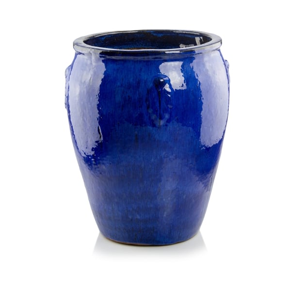 Ovaj veliki glazirani lonac izrađen je od gline i 100% je otporan na smrzavanje zahvaljujući odabiru prave vrste gline, vrlo visokim temperaturama peći (preko 1150 stupnjeva Celzijusa) i pravilnom procesu pečenja. Pogodna je za vrtove tijekom cijele godine, a na dnu ima malu rupu za otjecanje viška vode. Ručno izrađen od prirodnih materijala, svaki komad iz ove kolekcije je jedinstven, s efektima glazure, različitim nijansama, delikatnim udubljenjima, nedostajućim komadićima glazure i pucketavom glazurom. Njegova veličina i dizajn čine ga komadom namještaja i njime se može ukrasiti svaki prostor čak i bez biljaka. Posuda s teglom ima ornamentirani uzorak na svoje 4 strane. Pogodan je za privatne vrtove kao i za javna mjesta - hotele, urede, restorane. Vanjske dimenzije dajemo u najširim točkama artikla. Više informacija potražite u kartici tehnički podaci. Proizvodi su ručni rad i stvarne mjere mogu malo odstupati od deklariranih (+/- 10%).