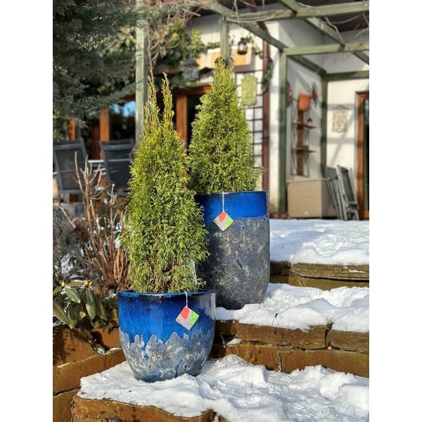 Keramička posuda otporna je na smrzavanje pa u njoj možete uživati bez obzira na vremenske prilike. Naša posuda ima drenažne rupe za održavanje pravih uvjeta za vaše biljke. Pošto ima prirodne slojeve glazure i različite boje to je čini jedinstvenim umjetničkim djelom. Nježne rezbarije naglašavaju njezin rustikalni šarm, dajući joj doista jedinstven izgled. Posuda se ističe svojom dubokom plavom bojom koja se savršeno uklapa u vanjski krajolik. Pravi je hit među ljubiteljima vrtne estetike. Njezina glatka sjajna gornja površina plijeni pozornost i naglašava njen elegantan izgled. Za više informacija provjerite karticu tehničkih podataka. Proizvodi su ručni rad i stvarne dimenzije mogu malo odstupati od deklariranih (+/- 10%).