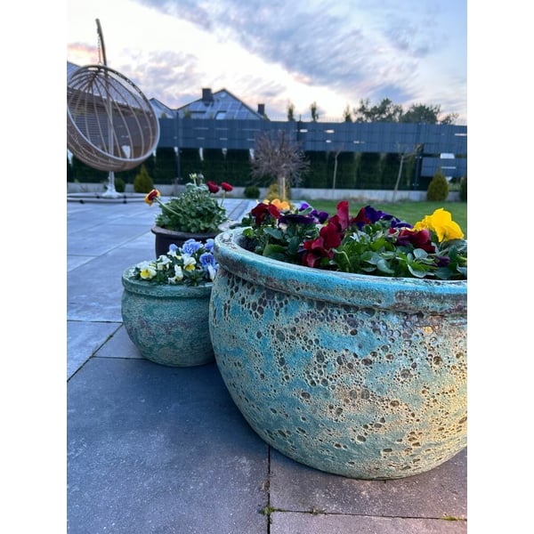 Niska posuda s okruglim dnom. Zahvaljujući odabiru prave vrste gline, vrlo visokoj temperaturi u pećnici (preko 1150 stupnjeva Celzijusa) i odgovarajućem procesu pečenja, posuda je 100% otporna na mraz. Korištenje u vrtovima tijekom cijele godine neće biti problem. Na dnu se nalazi mala rupa za prelijevanje vode. Ako rupa nije poželjna, može se zatvoriti npr. silikonom. Predmeti iz kolekcije Atlantis ručno su izrađeni od prirodnih materijala - mrlje od glazure, razne diskoloracije, nježne udubine, krakle glazure - dakle ne postoje dvije identične posude, svaki primjerak je unikat. Elegantan i univerzalan dodatak svakom dekoru. Posuda je savršena za korištenje u privatnim vrtovima kao i na javnim mjestima - hotelima, uredima, restoranima ili samo ispred ulaza - a također je vrlo masivna. Za više informacija pogledajte karticu Tehnički podaci. Proizvodi su ručni rad i stvarne dimenzije mogu malo odstupati od deklariranih (+/- 10%).