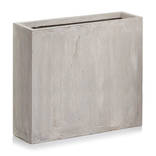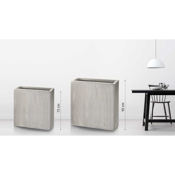 Izdužena, visoka posuda s pravokutnim dnom. Materijal koji se koristi (ekološka smola, vlaknasta glina) je kombinacija vlakana i keramike. Struktura površine je blago porozna i ima neravnomjerno raspoređene sitne rupičice, zahvaljujući čemu podsjeća na arhitektonski beton. Proizvod je relativno lagan, što je vrlo zgodno za kretanje, a istovremeno je dovoljno stabilan za korištenje u javnim prostorima. Artikal nema odvod za vodu, ali keramička vlakna su dovoljno jak materijal da je moguće sami izbušiti rupu; pripremljena su odgovarajuća udubljenja na dnu. Pa odlučite sami treba li posuda imati rupu. Ovaj model je sezonska vrtna posuda; to jest, nema jamstva za otpornost na smrzavanje, a preporučljivo je zaštititi ga za zimu - ukloniti ga od izravnog izlaganja vremenskim prilikama (npr., sakriti ga ispod nadstrešnice, pokrivača itd.). Izduženi oblik čini posudu za biljke poput "zelenog zida" za odvajanje prostora u sobama, vrtovima ili terasama. Ecolite kolekciju karakterizira moderan dizajn i jednostavna forma, zbog čega ovi proizvodi vrlo lijepo izgledaju, između ostalog, u prostorima uređenim u industrijskom stilu, otvorenim i zatvorenim. Za više informacija pogledajte karticu tehnički podaci. Proizvodi su ručni rad, a stvarne dimenzije mogu malo odstupati od deklariranih (+/- 5%). Svaki komad dolazi s uputama za sadnju. Za produljenje vijeka trajanja posude preporuča se dodatno zaštititi unutrašnjost preparatom poput tekuće folije. Budući da su artikli iz kolekcije Ecolite izrađeni od prirodnog materijala (keramičkih vlakana), posude upijaju vlagu. Stoga se tijekom uporabe mogu pojaviti lokalne mrlje od vlage na površini koje se s vremenom osuše i ne ostavljaju traga. Ovo je prirodan proces kod ove vrste materijala i ne utječe na funkcionalnost posude.